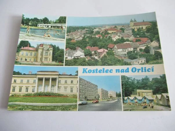 Kostelec nad Orlicí - koupaniště, sklenářka - škola v přírodě, zámek, celkový pohled, nová výstavba, letní tábor MírovSkladem 1 ks40 Kč/ ks