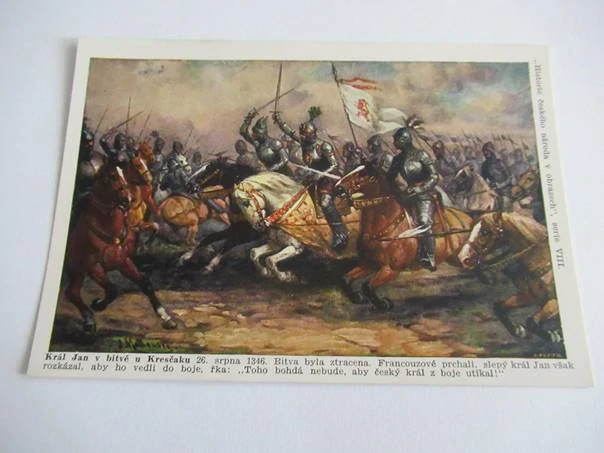 Král Jan v bitvě u Kresčaku r. 1346Skladem 1 ks40 Kč/ ks