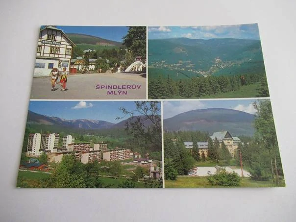 - Krkonoše - centrum s hotelem Hubertus, celkový pohled s Přední Planiny, bytová výstavba, vojenská zotavovna Bedřichov