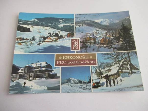 Krkonoše - Pec pod Sněžkou - horské rekreační středisko, pohled do údolí Pece, interhotel Hořec, Zotavovna ROH Hradec, Sněžka..Skladem 1 ks25 Kč/ ks