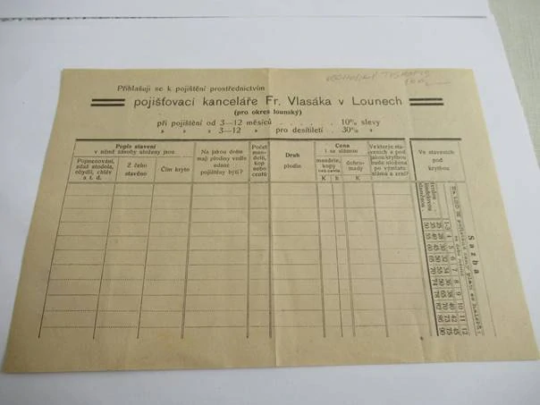 Louny - Fr. Vlasák - Pojišťovací kanceláře - obchodní tiskopis