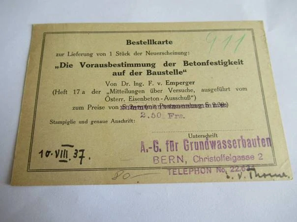- Objednávková karta - A-G. pro stavby podzemní vody - Bern