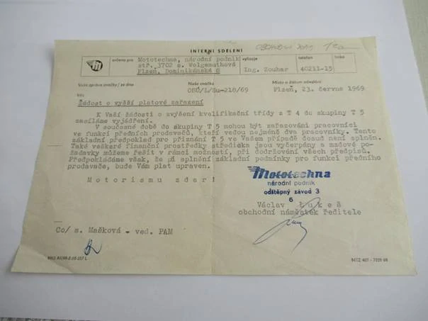 Plzeň - Mototechna, národní podnik - Obchodní dopis