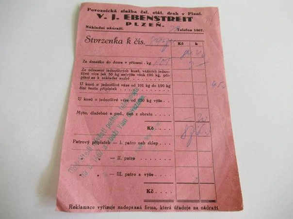 Plzeň - V. I. Ebenstreit - Provoznická služba čsl. stát. drah