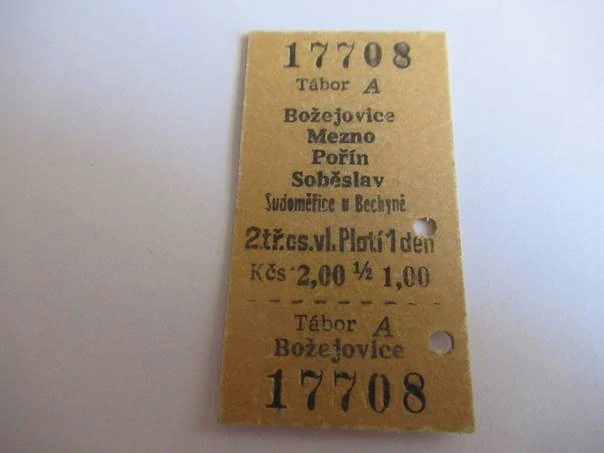 Tábor A - Božejovice - Mezno - Pořín - Soběslav - Sudoměřice u BechyněSkladem 1 ks80 Kč/ ks