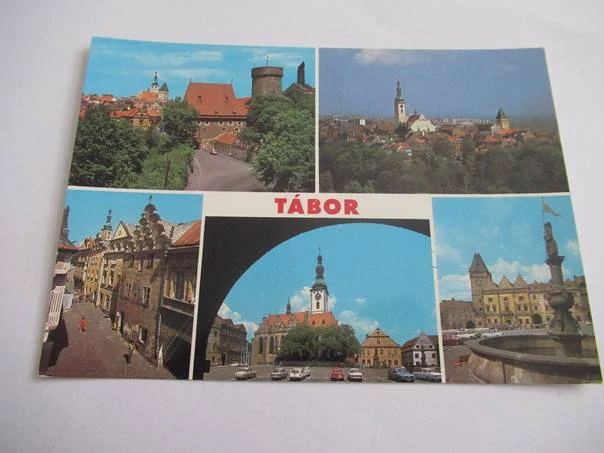 Tábor - zbytky středověkého opevnění, celkový pohled, Pražská ulice, Žižkovo náměstí, radnice s kašnouSkladem 1 ks40 Kč/ ks
